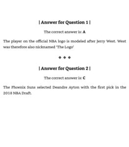 I hope I have managed to find a good mix of questions on historical topics and more current events. It should be suitable for NBA fans of all ages.